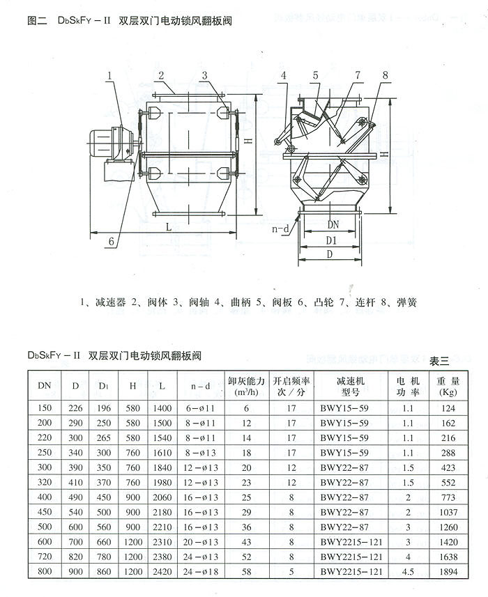 由減速器帶動傳動桿通過曲柄、 凸輪及連桿分別帶動上.下兩傳動軸旋轉,交互開啟,通過配務的杠桿系 統(tǒng)或拉伸彈簧,保證閥板可靠的復位,防止野風吹入,依確定的開閉頻率完成系統(tǒng)的給卸料 。