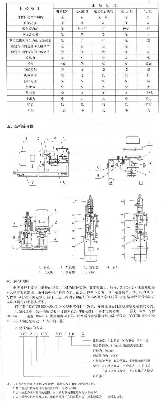 四.電液推桿與電動推桿、電動執(zhí)行機構(gòu)、液壓缸、氣缸性能比較一覽表